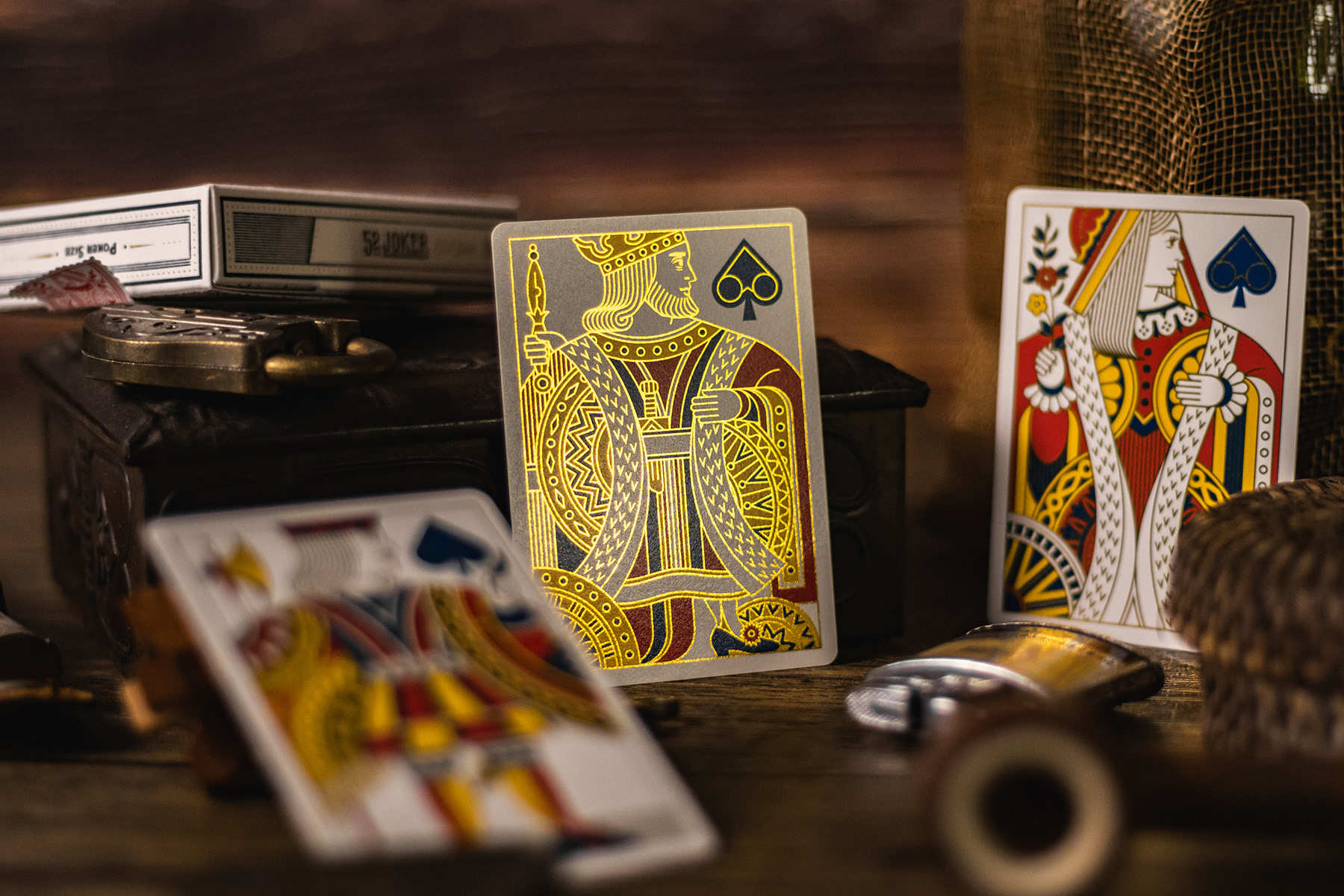 The card backs feature a pattern inspired by the so-called plainbacks. After exploring various design approaches, this choice emerged as the most thematically fitting and aesthetically appropriate.
