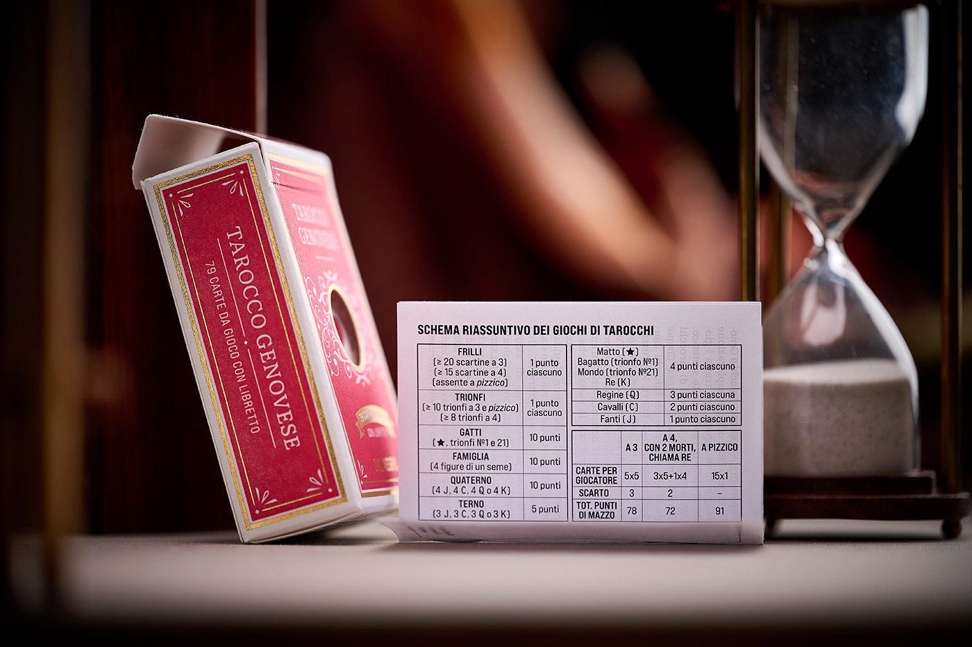 The idea behind the Tarocco Genovese stems from the awareness that tarot cards first emerged in 15th-century Italy as an extension of standard playing card decks. As confirmed by historical sources and recent studies, Liguria has long been a hub for tarot card production and a region where tarot games have remained popular over time..